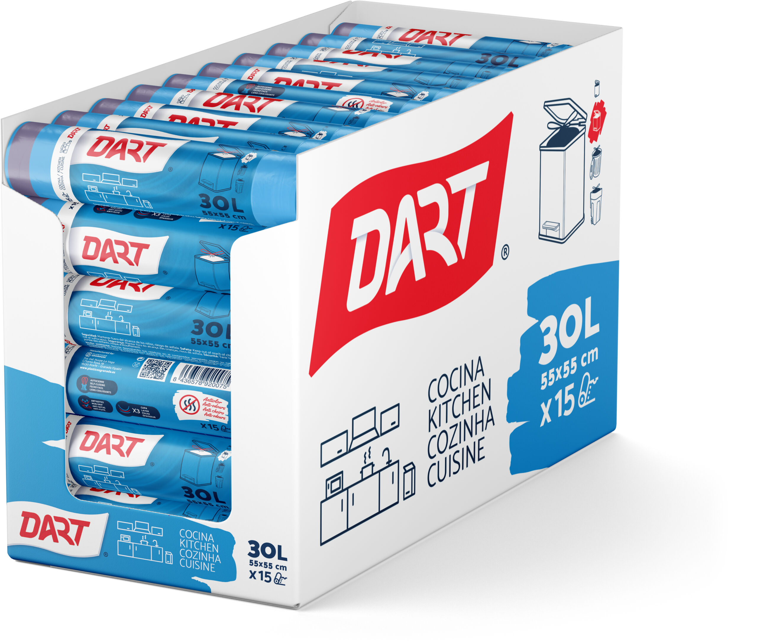 The most classic and versatile format for managing kitchen waste. With antistatic treatment that facilitates its opening and placement in the bucket.